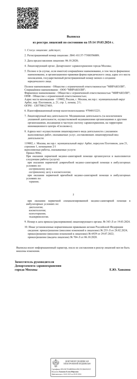 Лицензия на осуществление медицинской деятельности № Л041-01137-77/00338674 от 21.01.2020